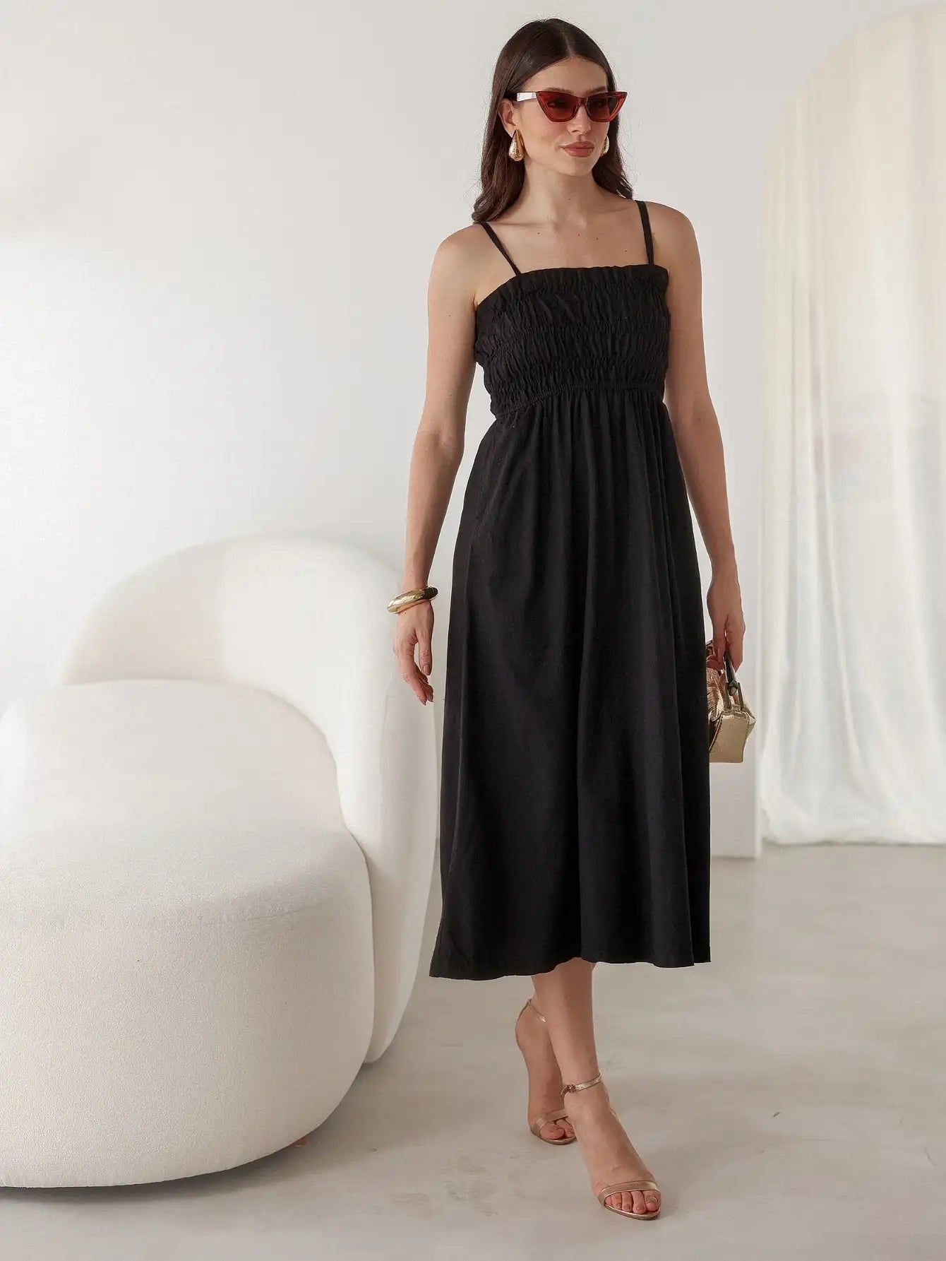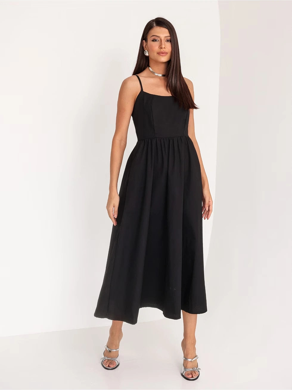 Vestido Midi Alfaiataria Sem Manga