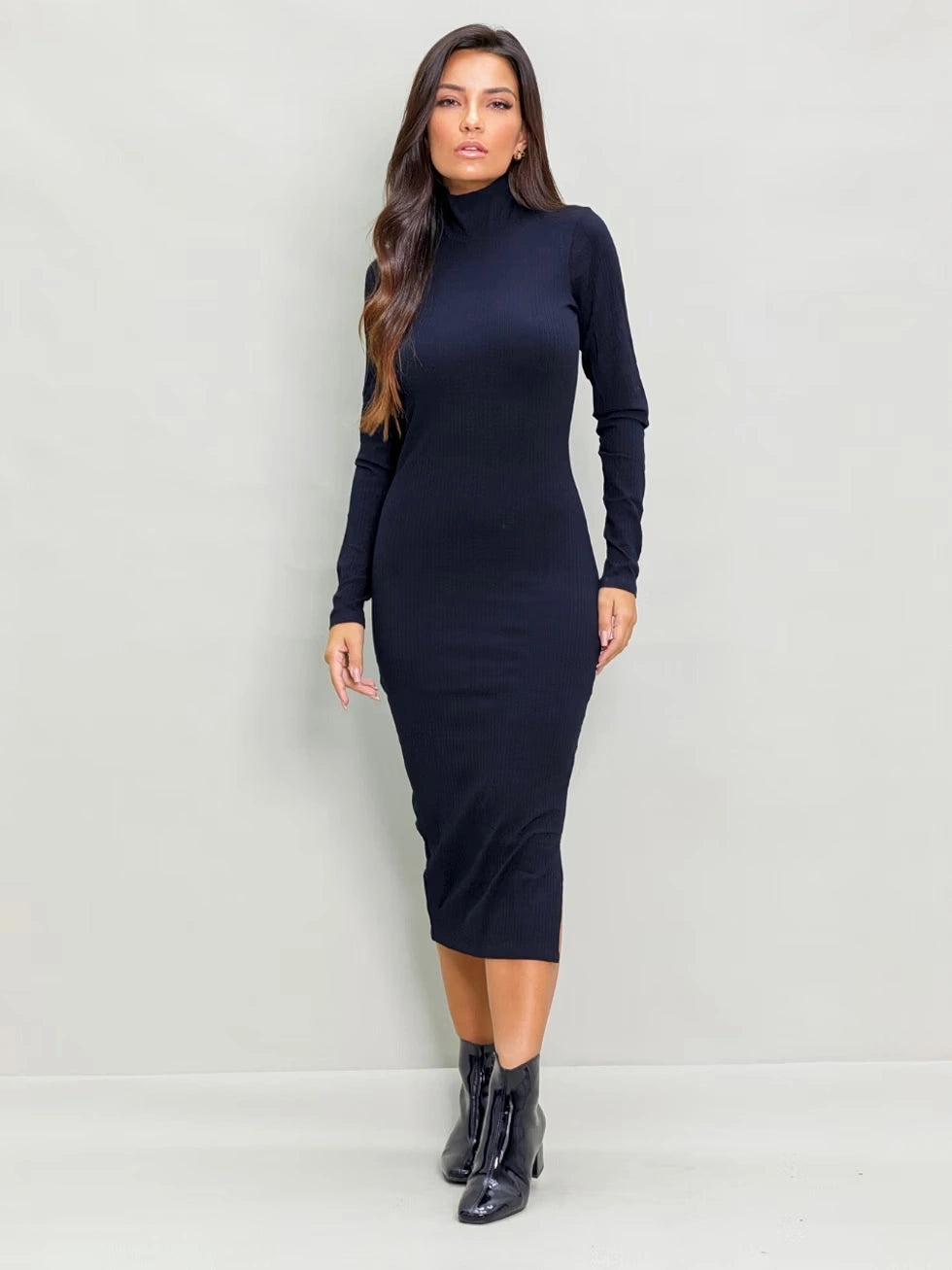 Vestido Midi Canelado Fenda Lateral