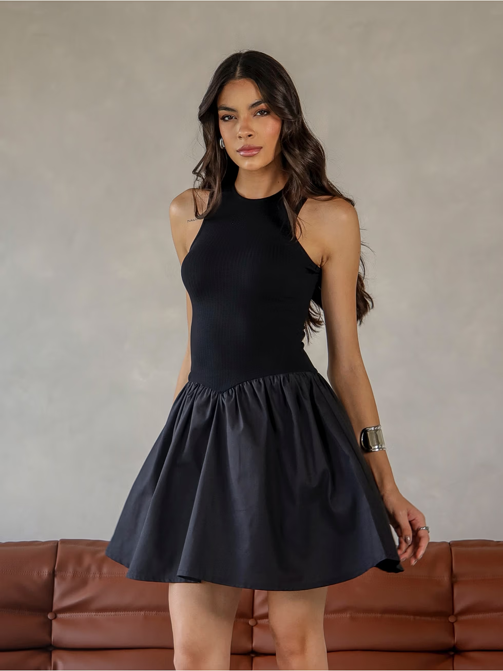 Vestido Ajustado com Botões Dourados