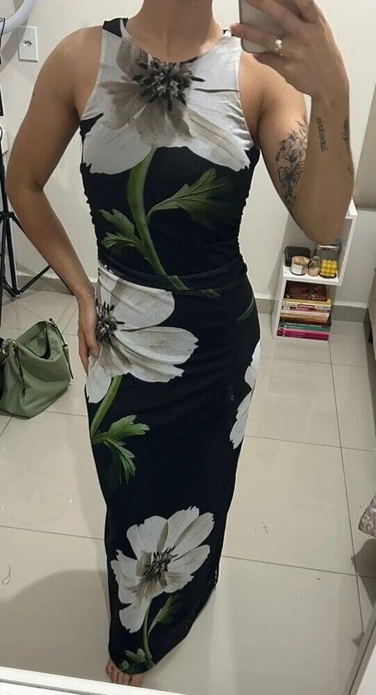 Alguns vestidos você usa. Outros te transformam. O Vestido Midi Floral Statement desperta a mulher confiante que existe em você - aquela que não precisa gritar para ser notada, apenas floresce.